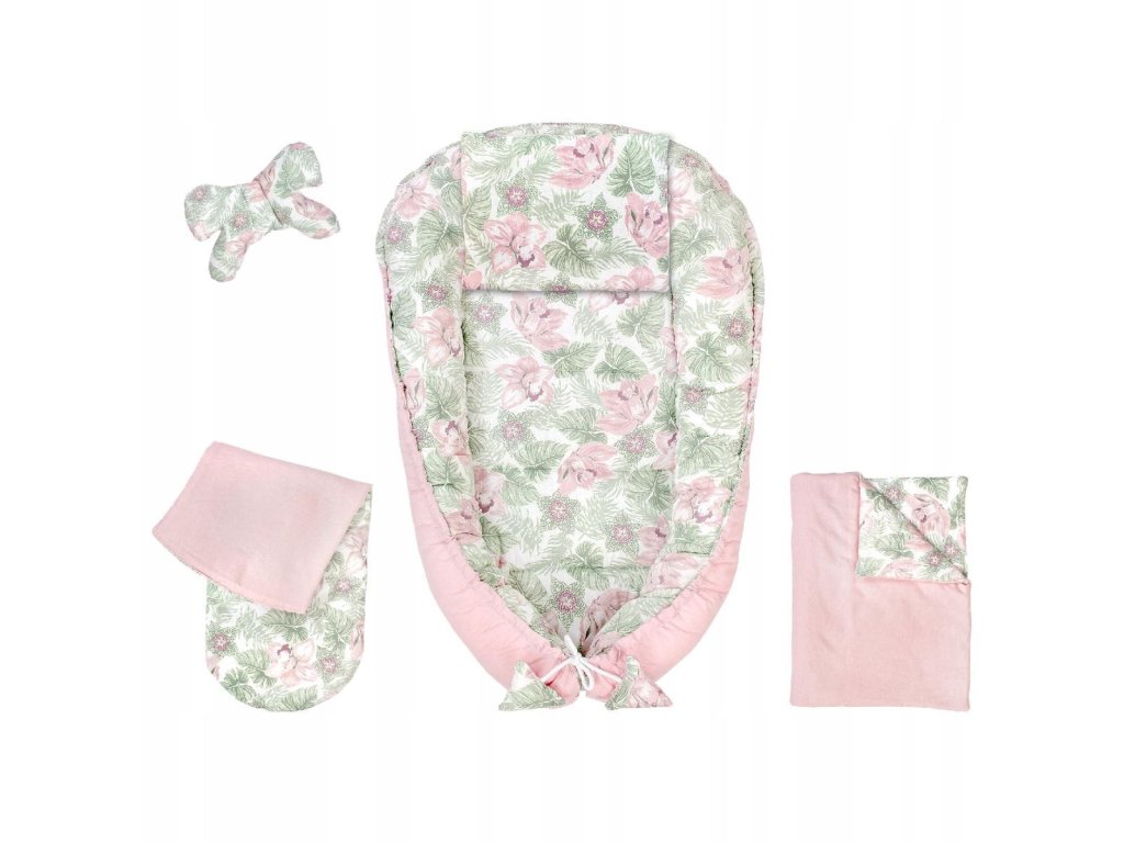 Hnízdečko pro miminka BEST 5v1 - růžové - vzor jarní zahrada