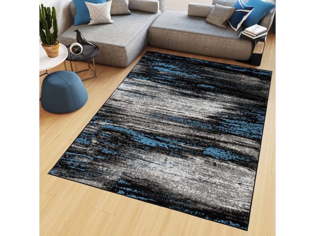 Kusový koberec Maya - abstrakt 3 - čierny/modrý