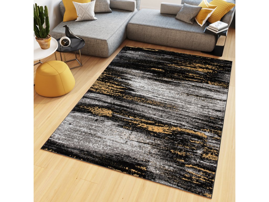 Kusový koberec Maya - abstrakt 3 - čierny/žltý