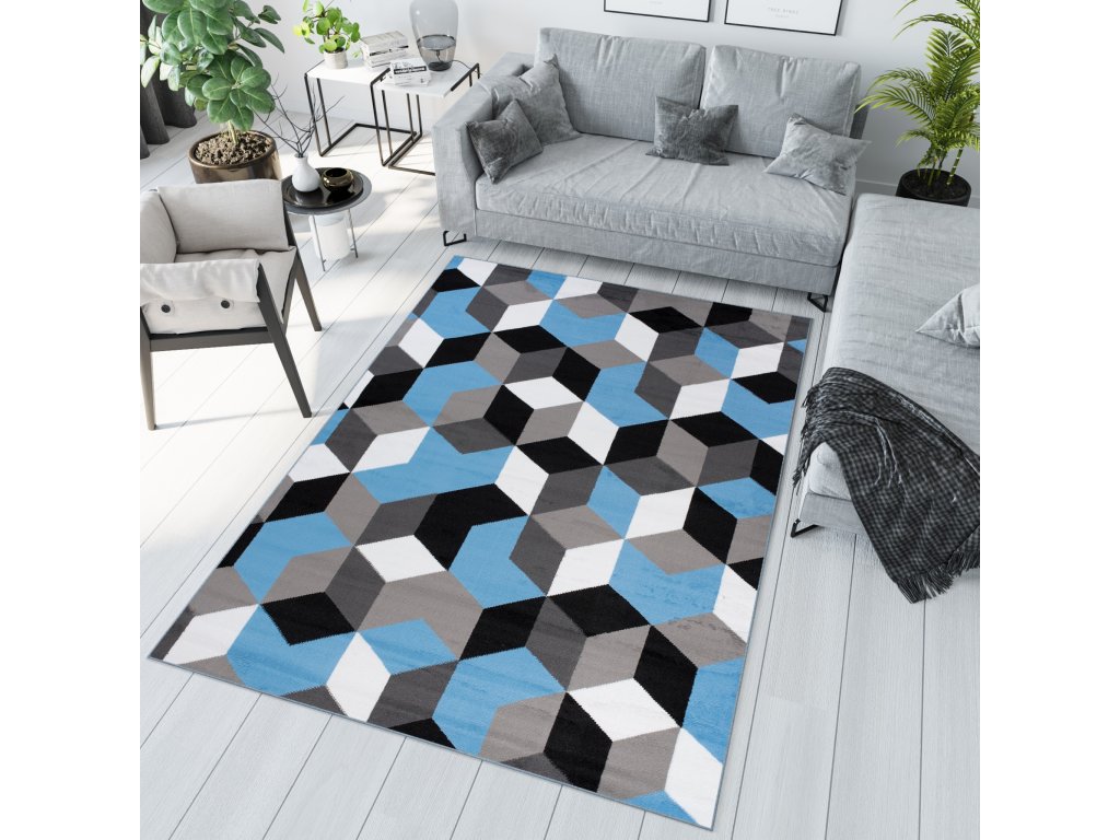 Kusový koberec Maya - geometrické tvary 1 - čierny/modrý