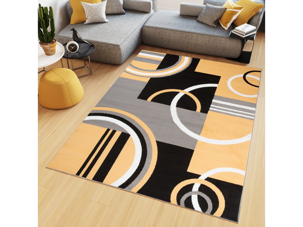 Kusový koberec Maya - geometrické tvary 2 - sivý/žltý