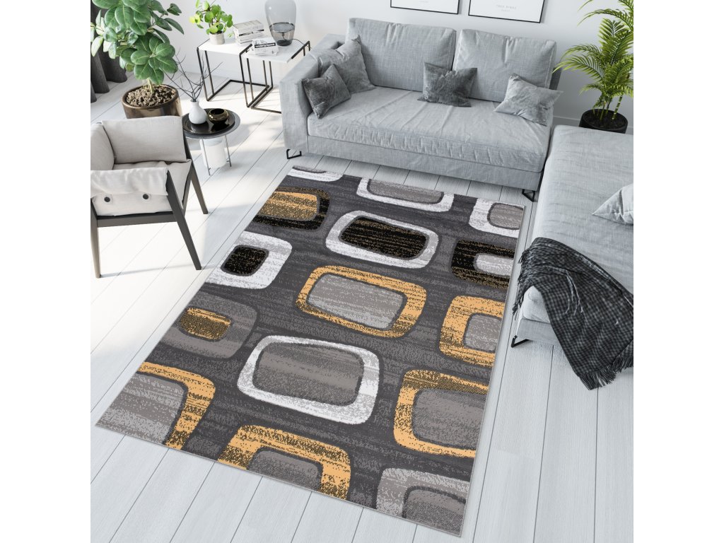 Kusový koberec Maya - geometrické tvary 2 - sivý/žltý