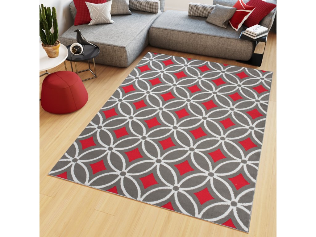Kusový koberec Maya - geometrické tvary 3 - sivý/červený