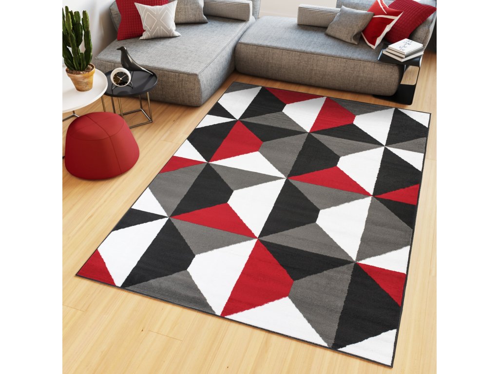 Kusový koberec Maya - geometrické tvary 6 - sivý/červený