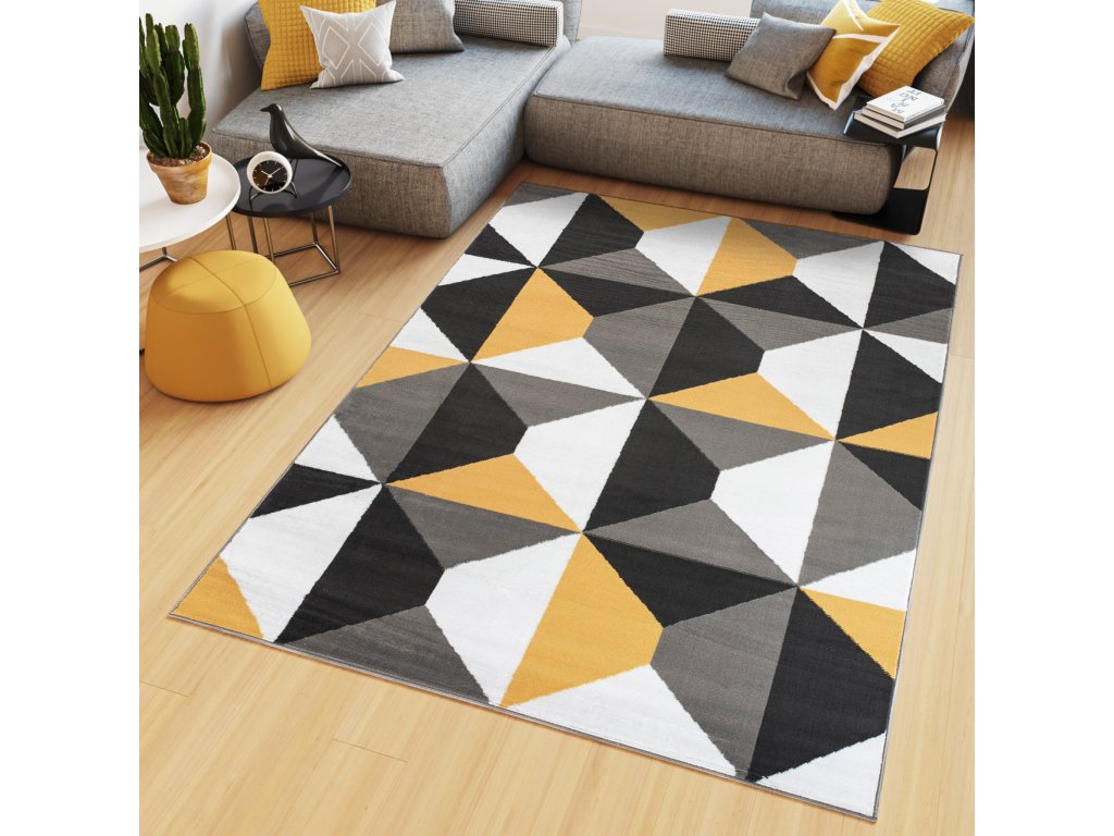 Kusový koberec Maya - geometrické tvary 6 - sivý/žltý