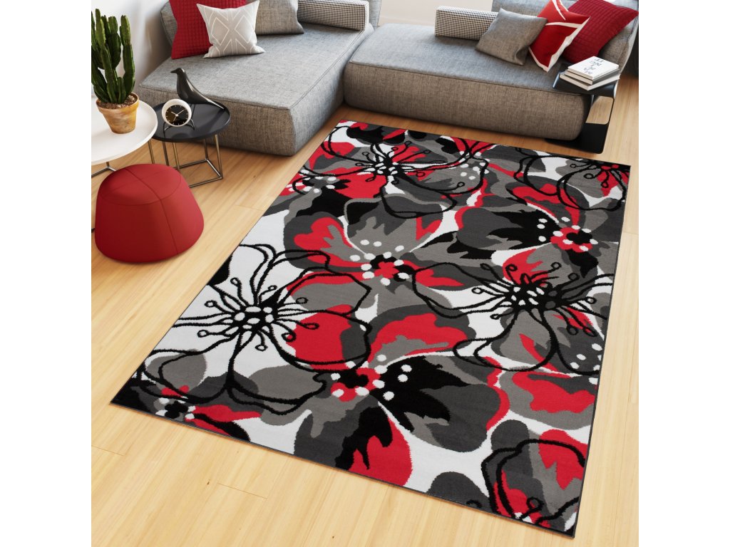 Kusový koberec Maya - kvety 2 - sivý/červený