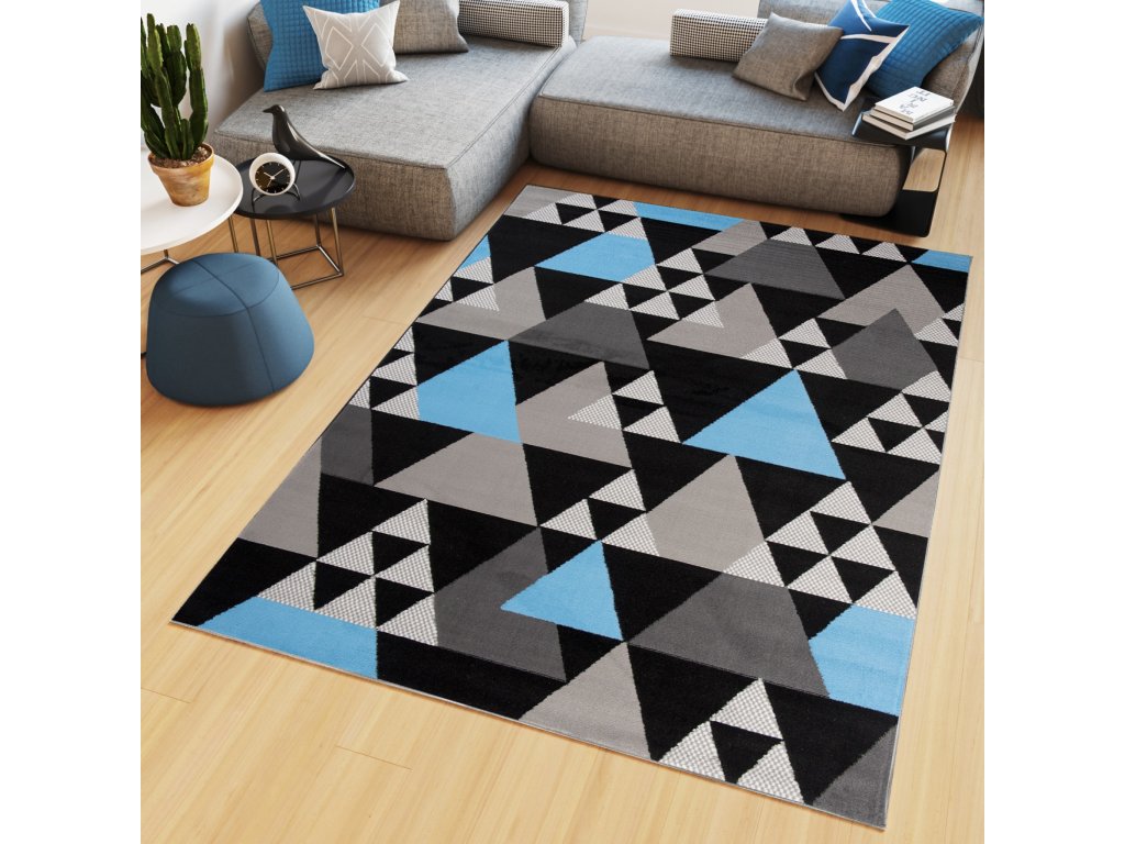 Kusový koberec Maya - trojuholníky 2 - čierny/modrý