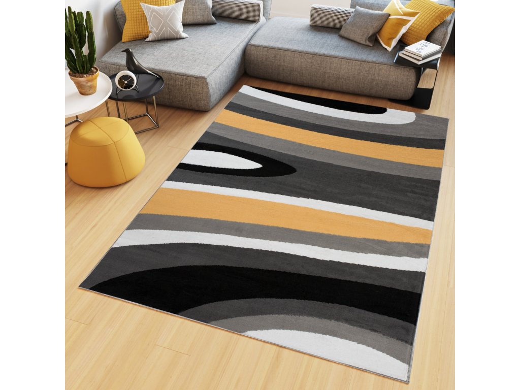 Kusový koberec Maya - vlnky 2 - čierny/žltý