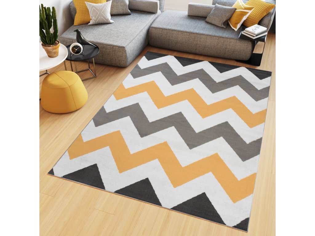 Kusový koberec Maya - vlnky 3 - sivý/žltý