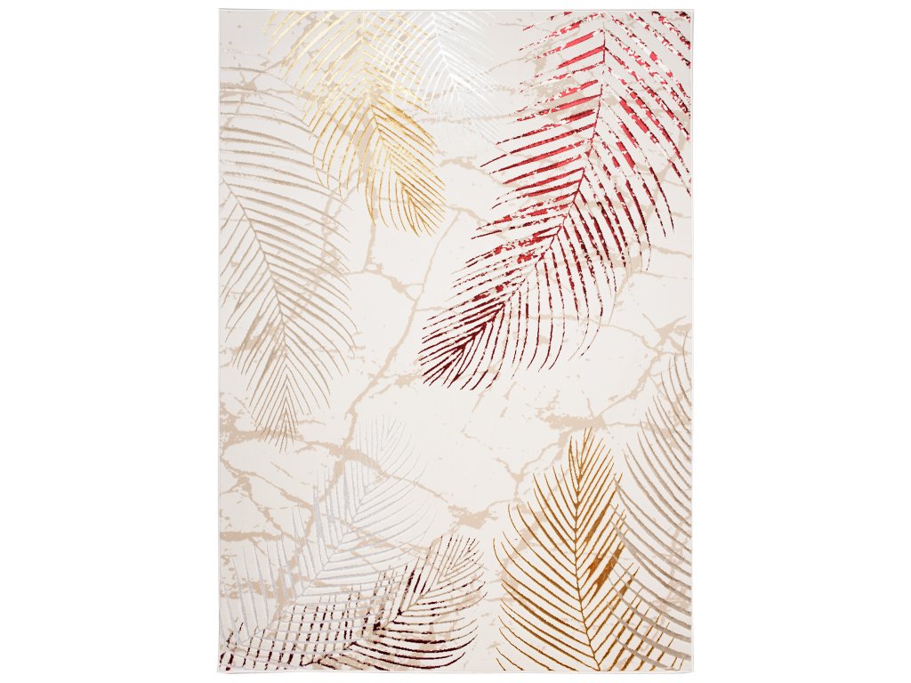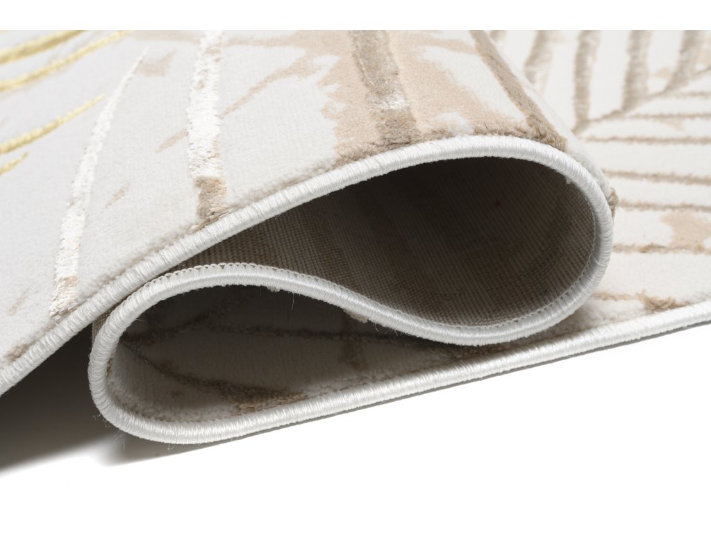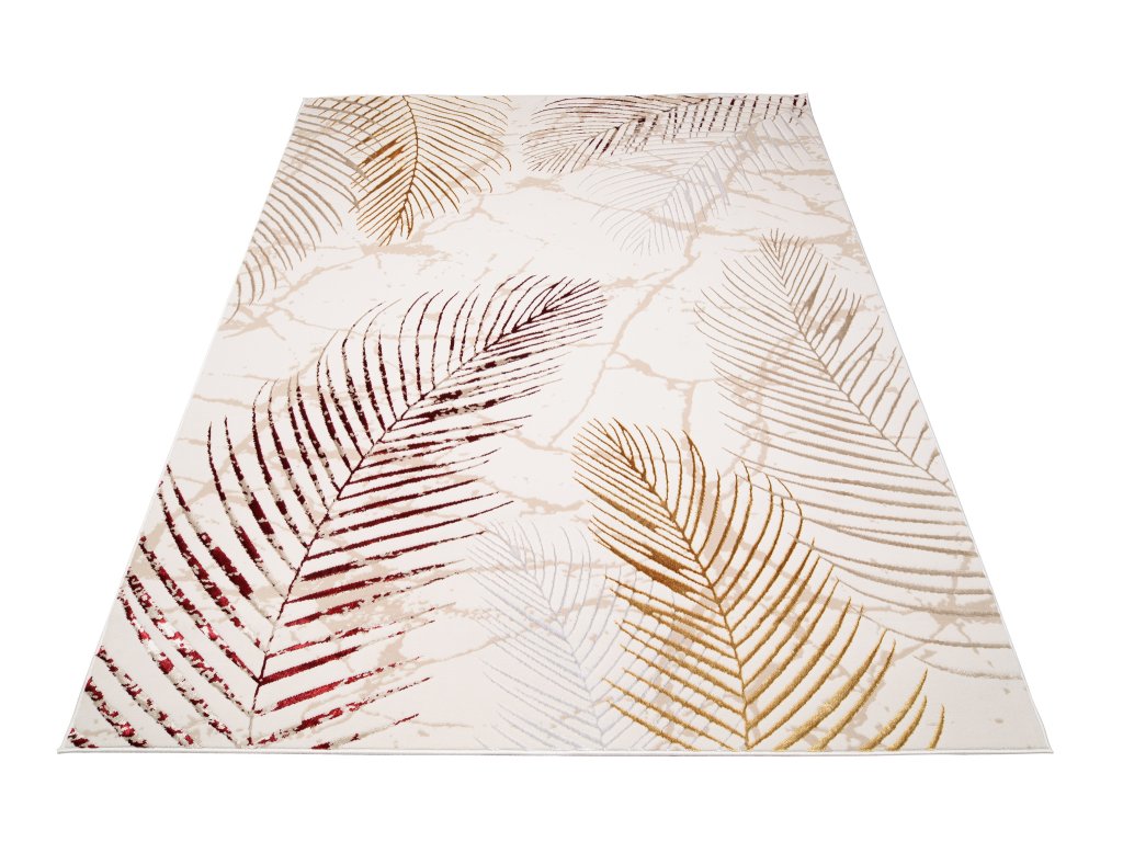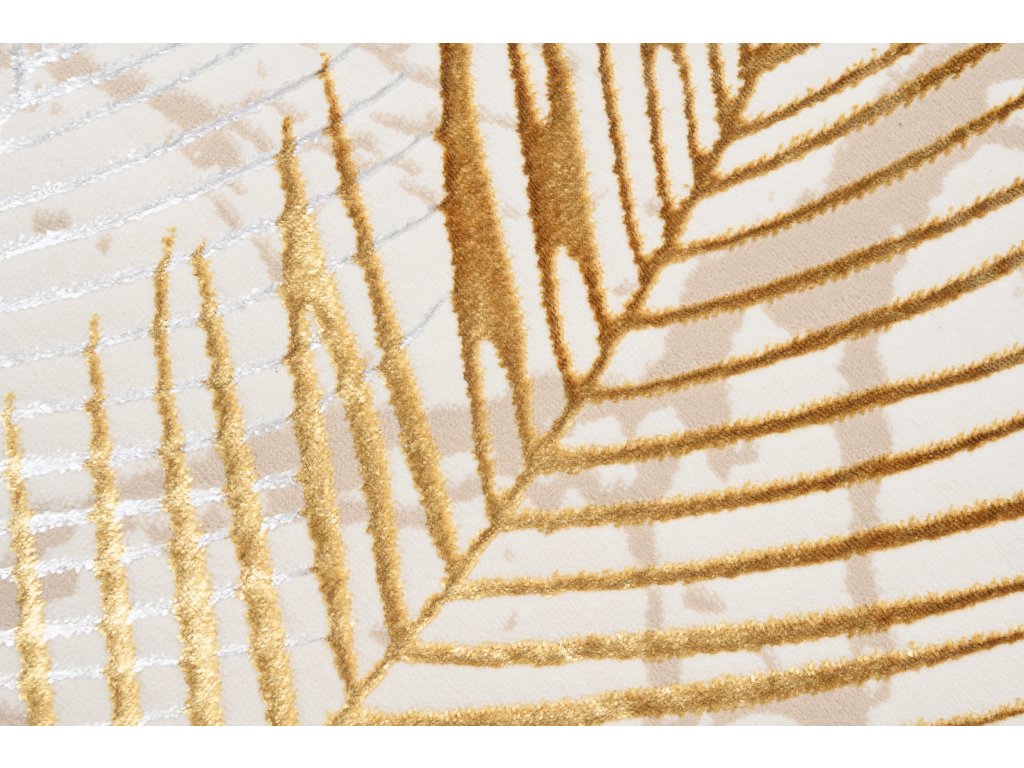 Moderný koberec Golden - listy 2 - krémový/zlatý