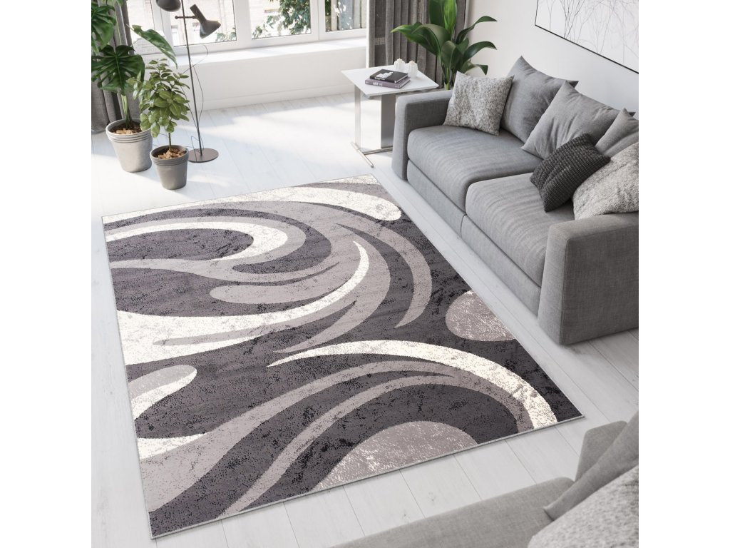 Moderný koberec Tap - vlnky 3 - tmavo sivý