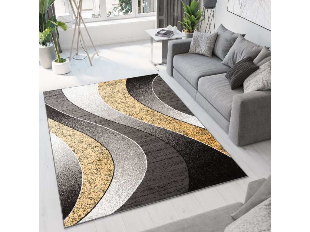 Moderný koberec Tap - vlnky 5 - žltý/sivý